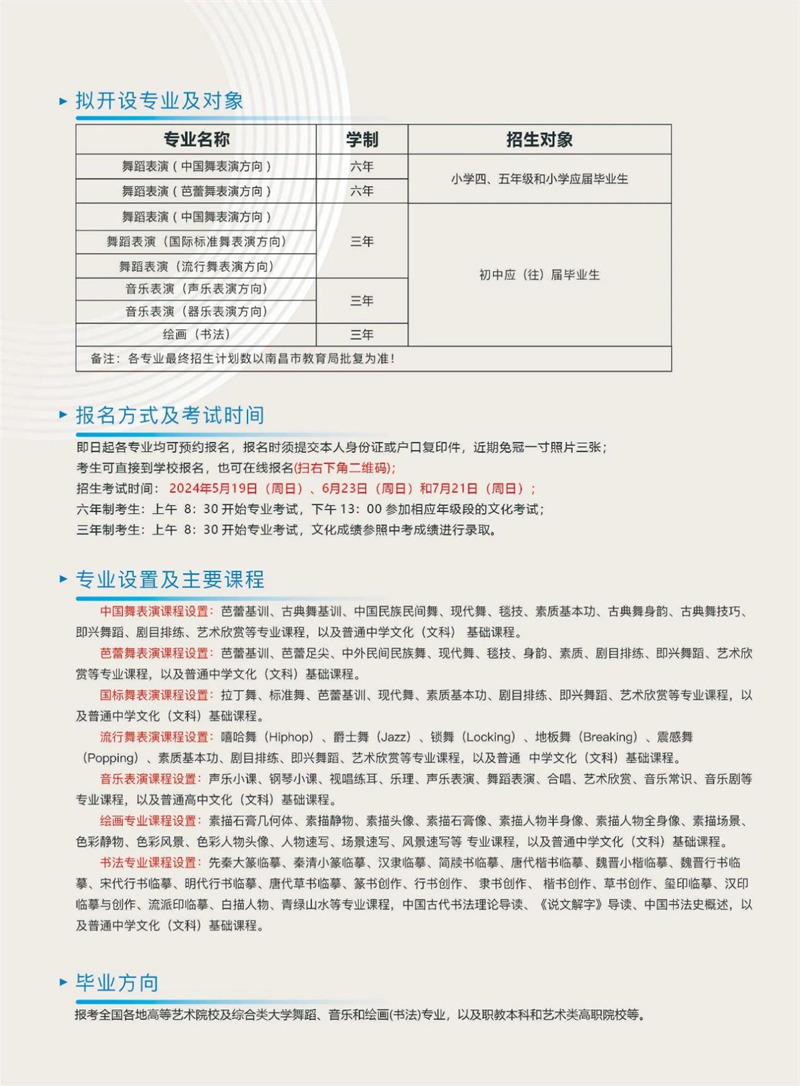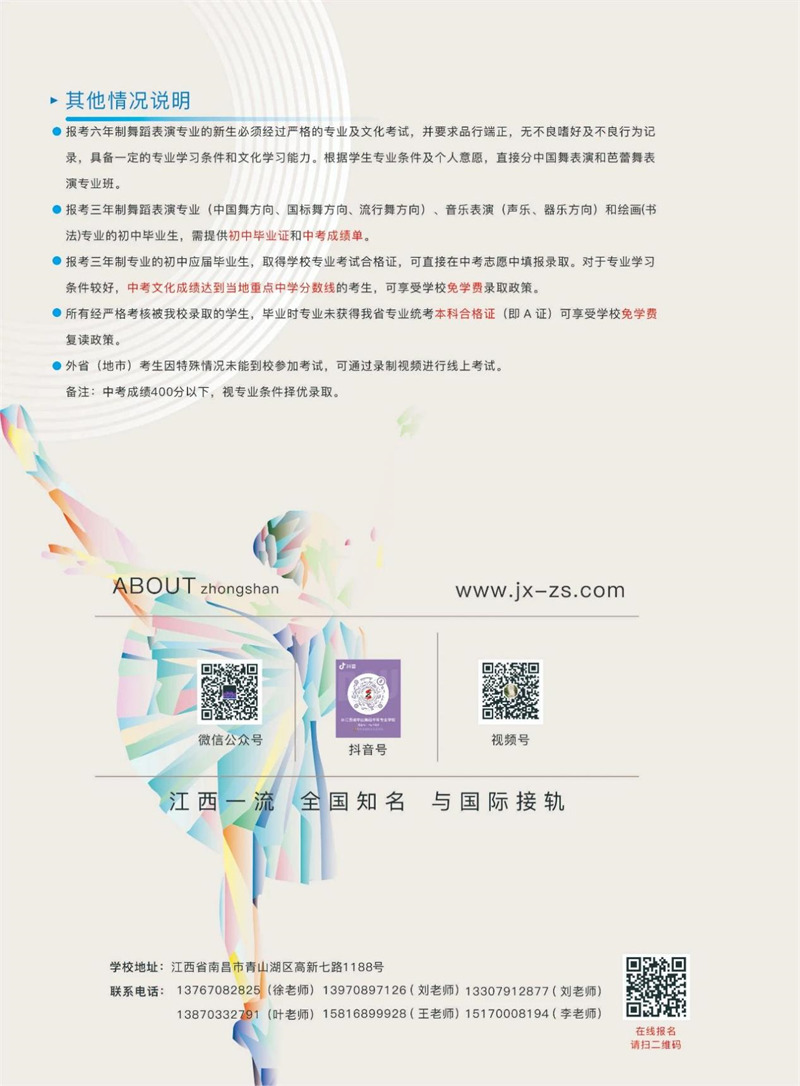 江西省中山舞蹈中等专业学校2024年招生简章