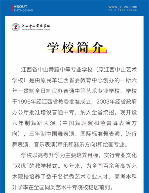 江西省中山舞蹈中等专业学校2025年招生简介