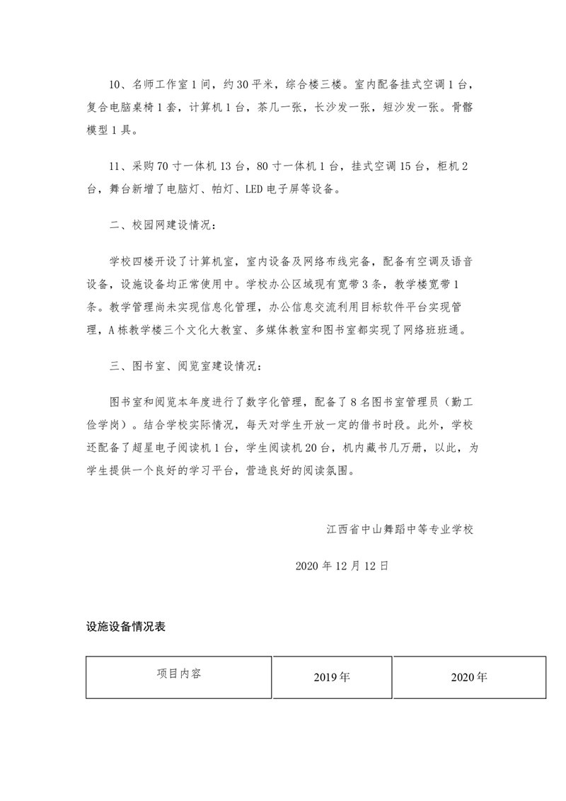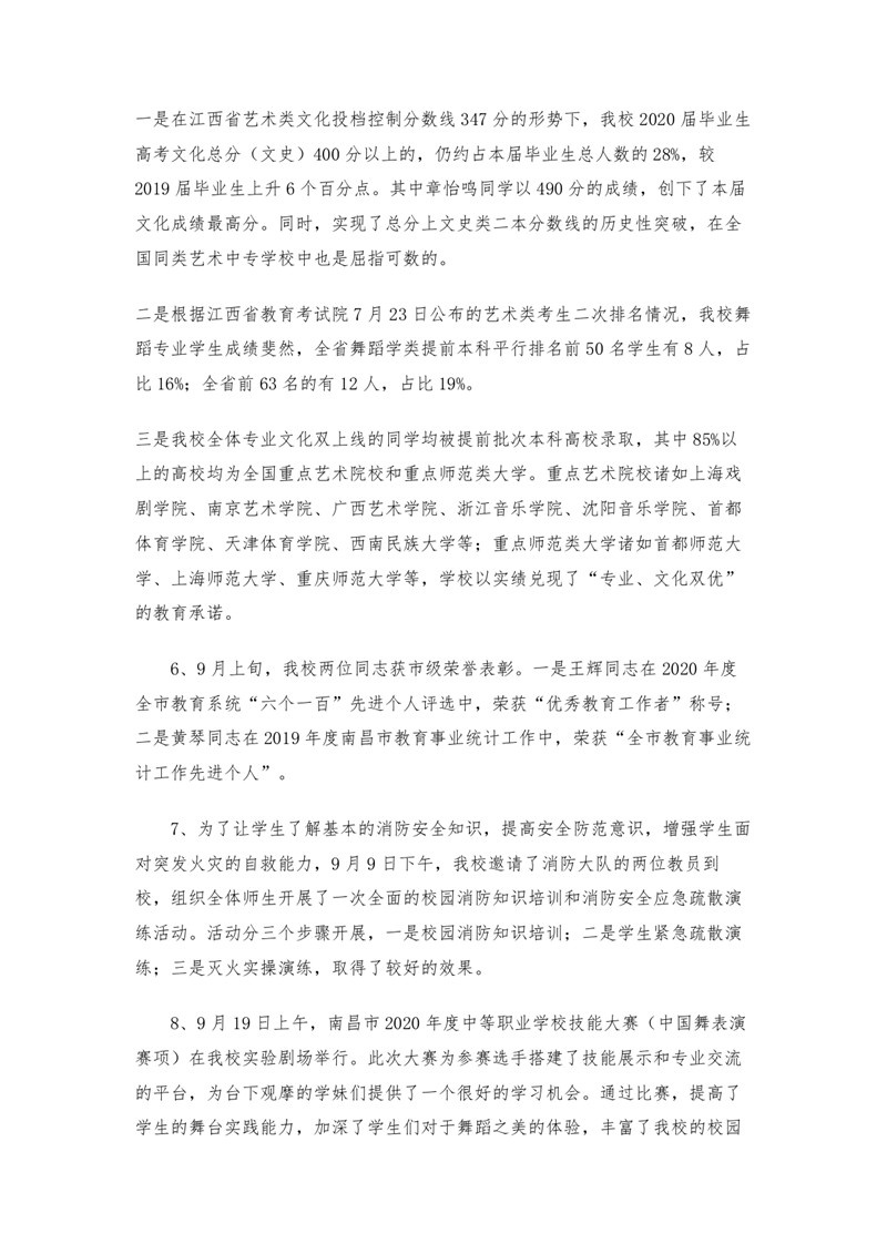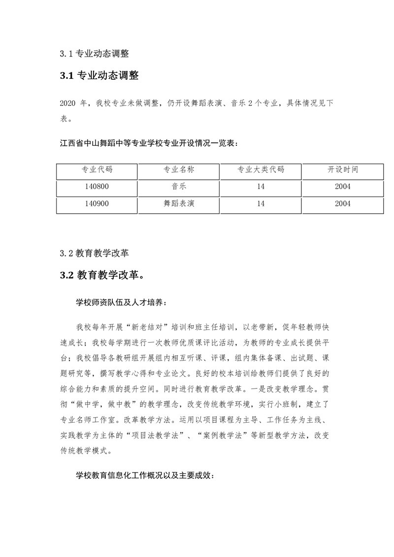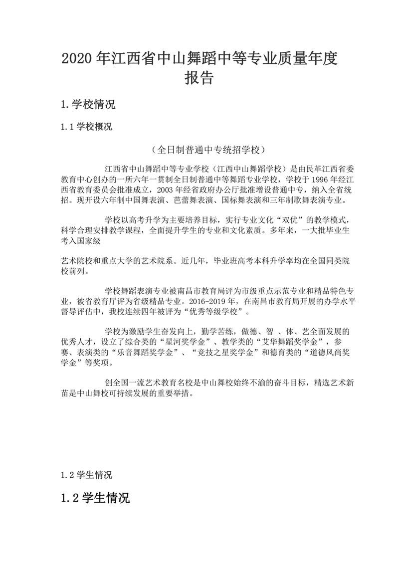 2020年江西省中山舞蹈中等专业中等职业教育质量年度报告