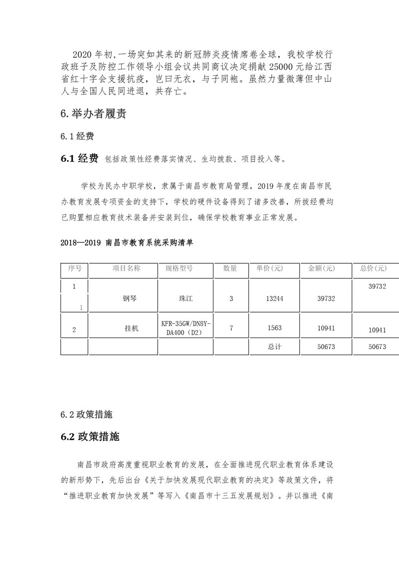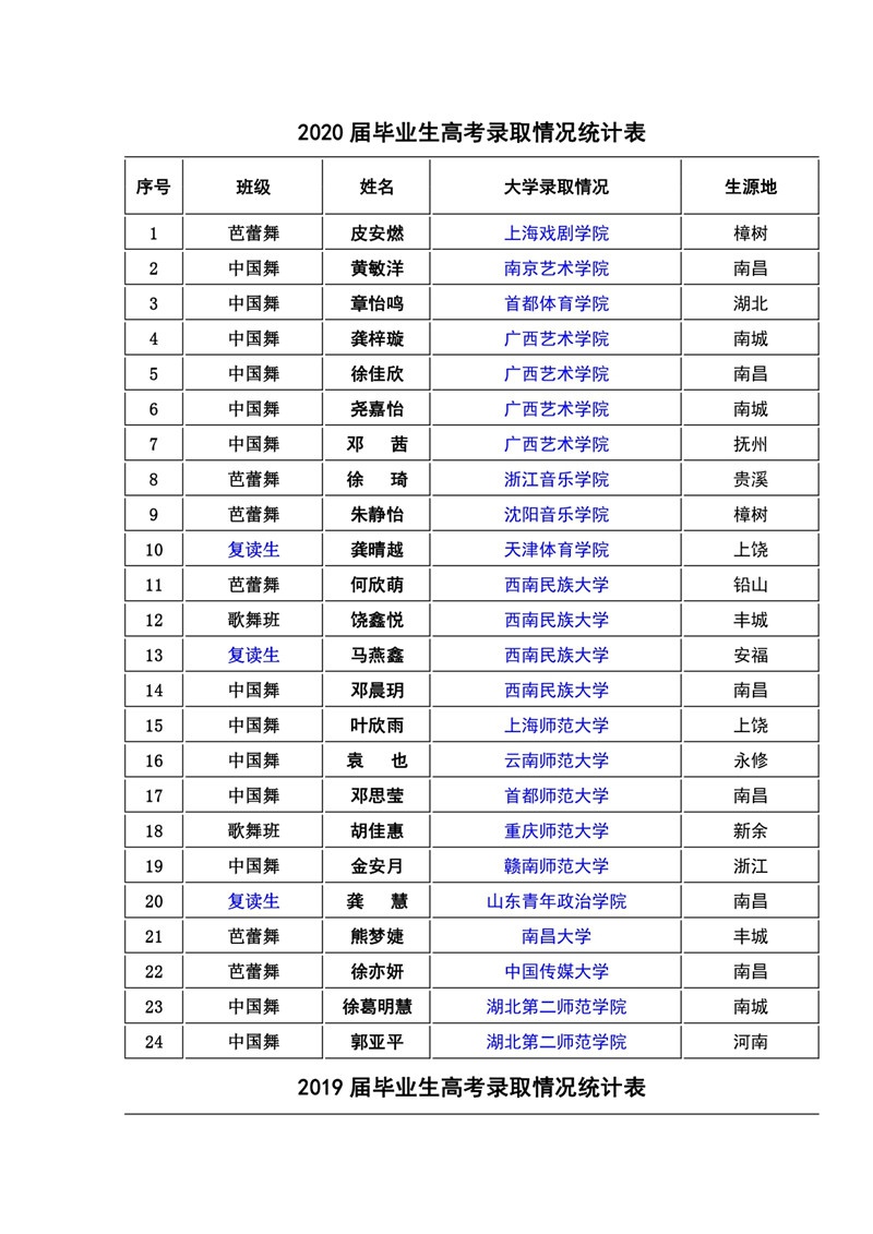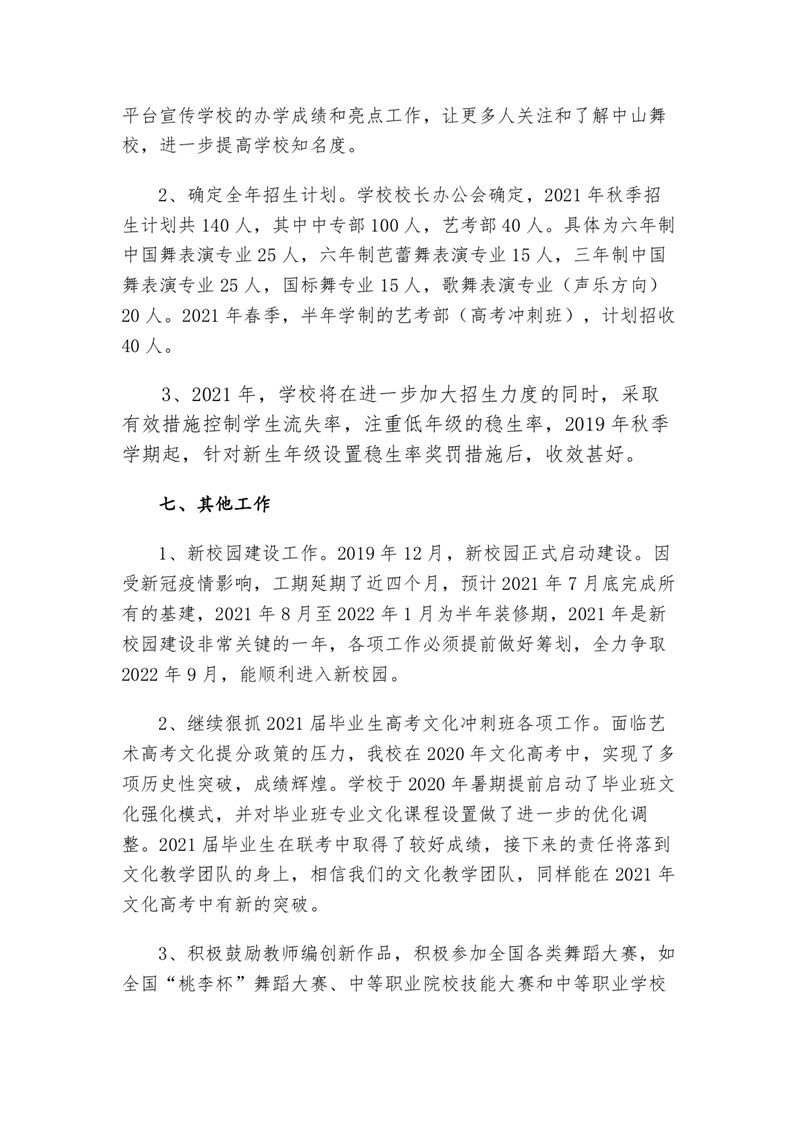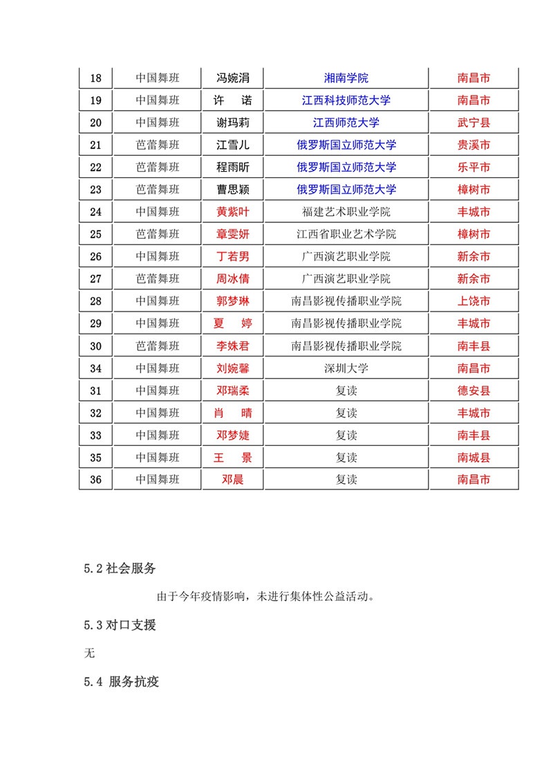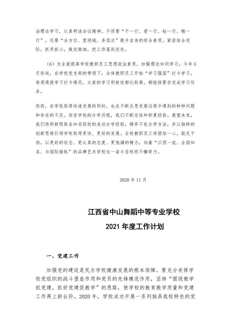 2020年江西省中山舞蹈中等专业中等职业教育质量年度报告