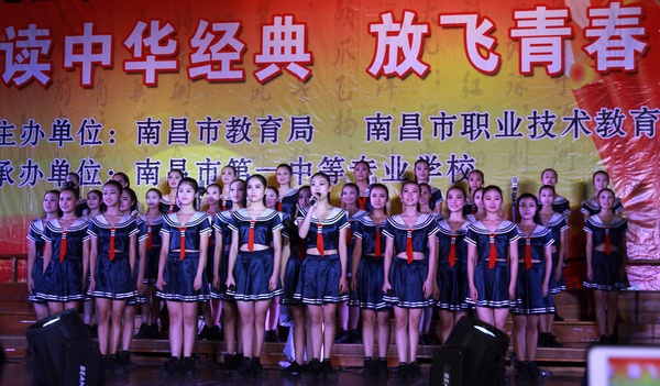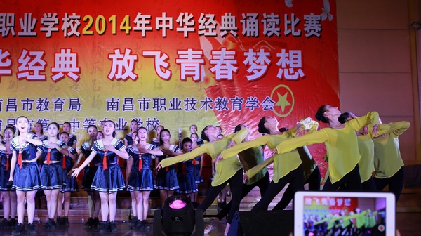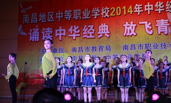 为了弘扬中华传统文化、培养中职生的民族精神、爱国情怀和社会责任感,让经典浸润师生的心灵,进一步营造浓厚的校园书香氛围。12月12日,由南昌市教育局、南昌市职业技术教育学会联合举办的,南昌地区中等职业院校2014年中华经典诵读比赛活动,在南昌市一中等专业学校(昌北校区)进行,共有来自南昌地区14所中等职业院校600余名师生参加了本次活动。经过激烈的竞争,我校荣获比赛“一等奖”的好成绩。