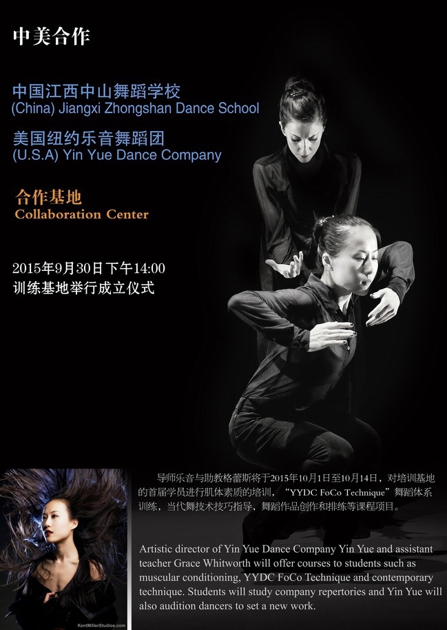 由江西中山舞蹈学校与美国纽约乐音舞蹈团,共同创建的舞蹈训练合作基地定于2015年9月30日下午14:00举行成立仪式。
