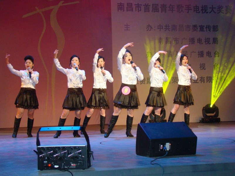 2008年1月5日下午,南昌广电中心演播大厅里洋溢着既热烈又紧张的气氛,南昌青年歌手电视大奖赛在这里举行总决赛。在高手云集的竞赛选手中,有一支来自我校的“六玲珑”组合,07级音乐班的学生入校才几个月,06级音乐班的学生也才是二年级上学期,这是一支参赛选手中年轻的队伍。在陈文艳老师的带领下,她们从容不迫地走向赛场,勇敢地与大学音乐专业高材生和大学音乐教师同台竞技,获得了表演奖,她们能够在激烈的竞争中脱颖而出进入总决赛,来自于老师的辛勤辅导和她们自己的勤学苦练,可喜可贺!