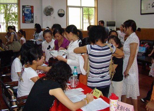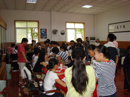 殷切期望,焦急等待,满怀憧憬的新生报到日—9月6日终于到了。一大早,新生在家长的护送下就开始陆续地来到学校。报到大厅没有拥挤不堪的场面,因为学校的各项准备工作早在暑假期间就已全部准备就绪,家长们只需按照“报到流程”逐项在老生们的引导下完成即可。由于外地生较多,直到下午4时,全部新生才报到完毕。
