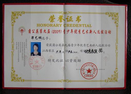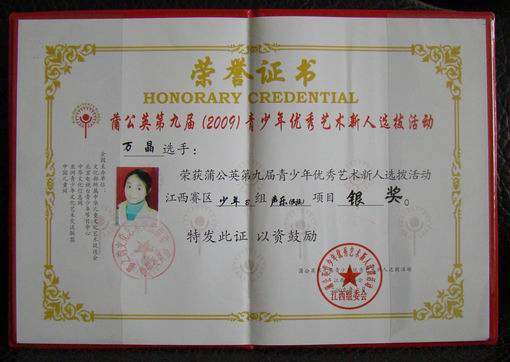 我校音乐专业五位同学参加了比赛,经过激烈的角逐,取得了可喜的成绩。其中章驰、邱悦同学分别荣获江西赛区青年组民族唱法金奖和少年B组民族唱法金奖;万晶荣获少年B组银奖,邓小玲和梁艺璇也获得了演唱奖!