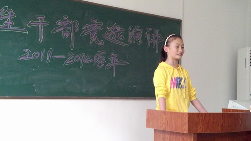 为加强学生管理,加大学生干部队伍建设力度,保证毕业班学生有更多的时间备战高考,同时吸收一批学生补充我校学生会干部队伍,学校在11月份进行了第七届学生会干部换届竞选活动。本次竞选分初赛和决赛两个阶段,分别在11月8日和16日在多媒体教室进行。