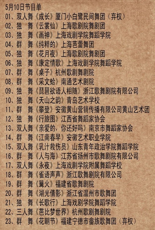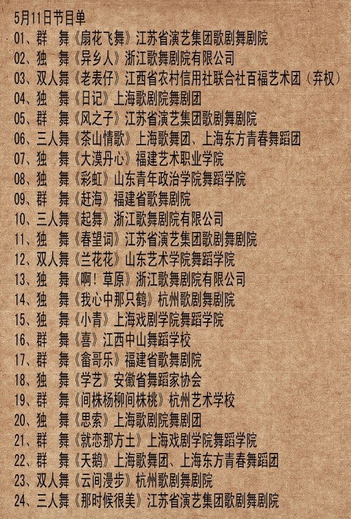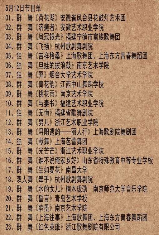 2012年华东地区舞蹈比赛现场决赛节目单