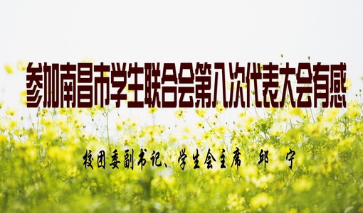 9月23日,江西饭店彩旗飘扬,横幅高挂,洋溢着热烈祥和的气氛,南昌市学生联合会第八次代表大会在此胜利召开。作为学校团委副书记、学生会主席的我,有幸成为全市七十多所学校76名正式代表中的一员并代表学校参加此次盛会,我深感自豪。因此,在会议期间,我始终以饱满的精神状态,积极参加各类研讨会,认真学习了领导在开幕式上的重要讲话,并对大会工作报告进行了深入学习。