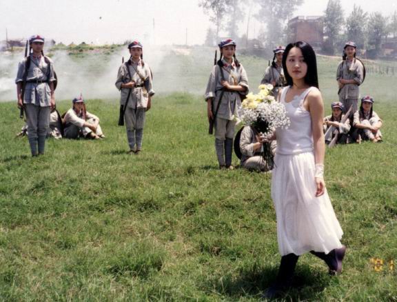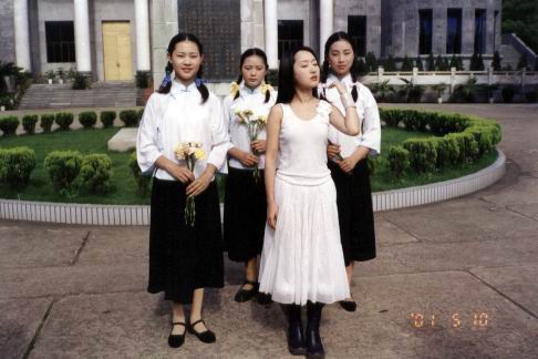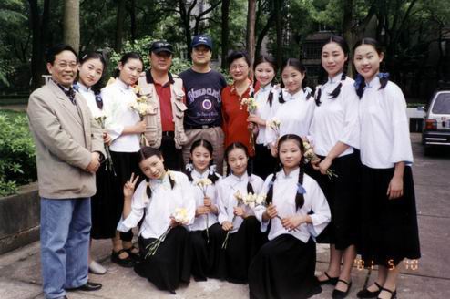 与歌星杨钰莹一起拍摄建党七十周年MTV
