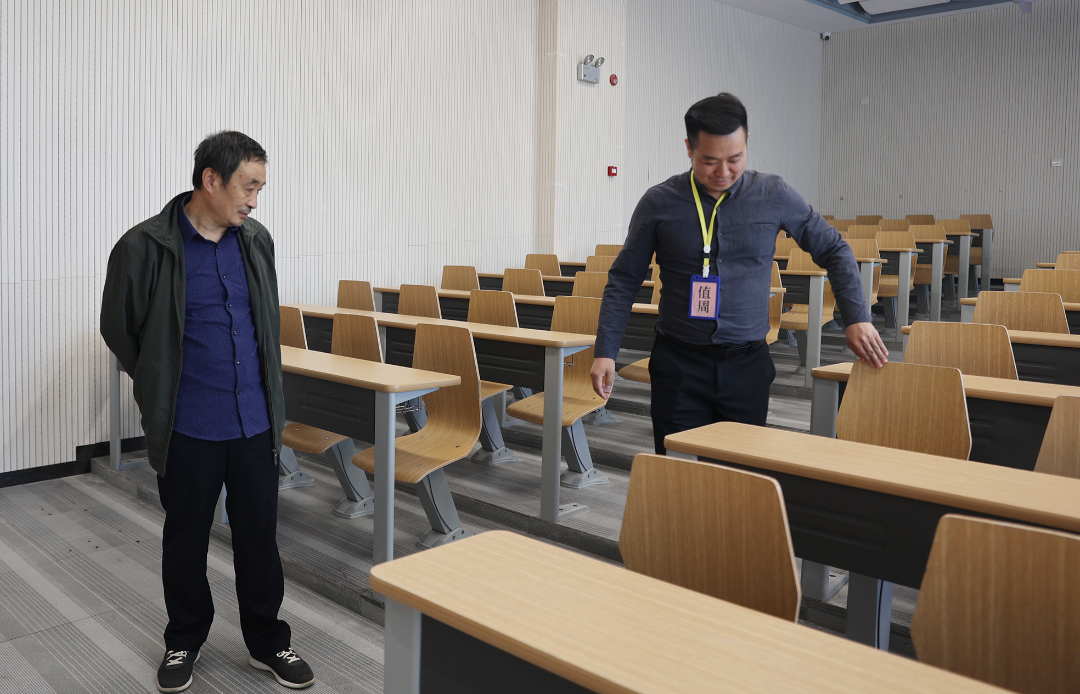随后,石磊督学一行在潘玲春校长的陪同带领下,依次参观了新校区的教学楼、阶梯教室、舞蹈房、合唱室、学生宿舍、食堂等。详细询问了新校区校园建设的项目整体情况,并对新校区的校园环境建设给予了高度肯定,同时也提出了若干指导意见,为新校区今后的发展指明了前进的方向。