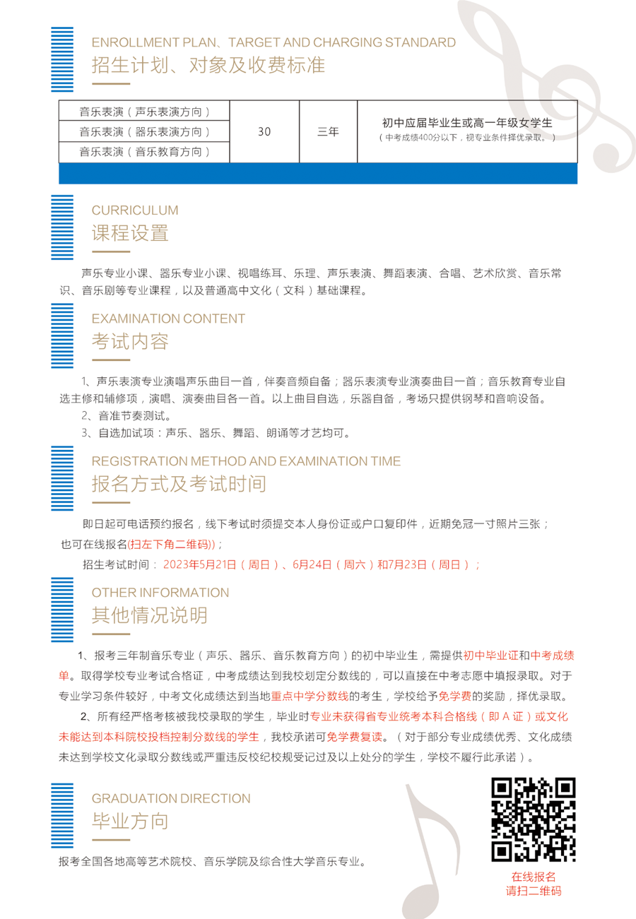 江西省中山舞蹈中等专业学校2023年音乐专业招生简章