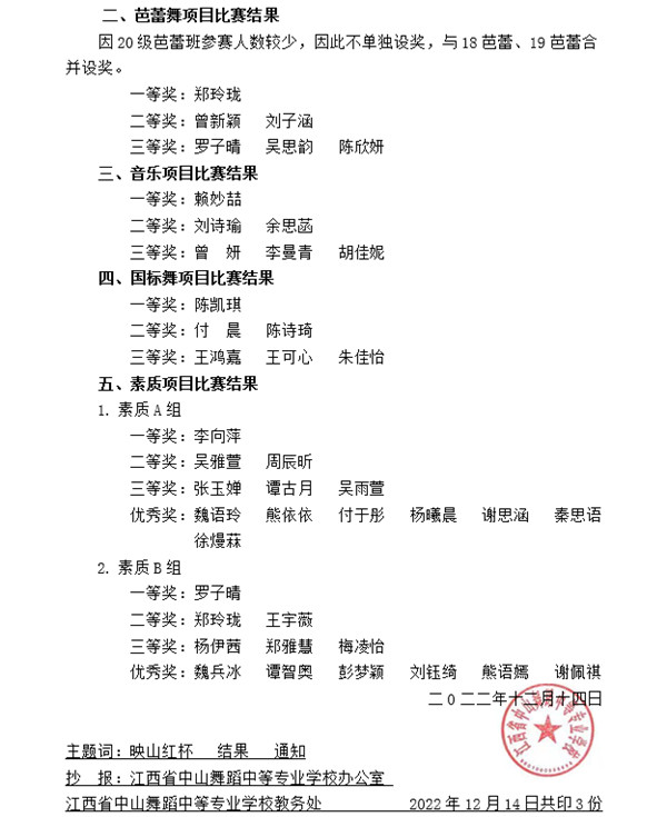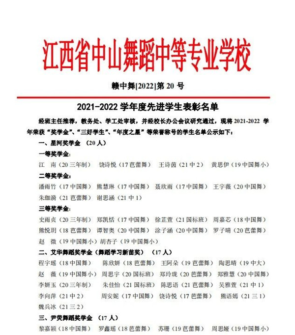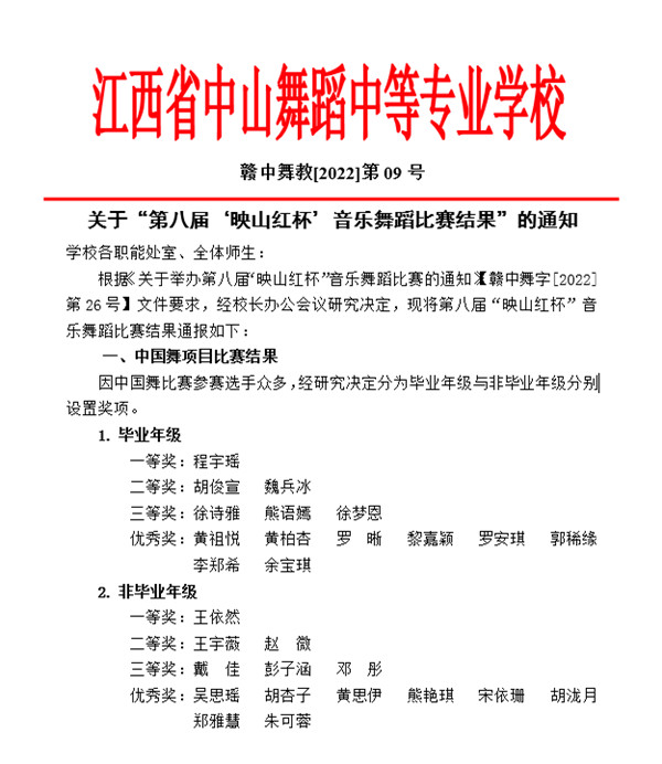 2021-2022年度的第八届“映山红杯"音乐舞蹈比赛中,参赛选手勤奋刻苦、努力拼搏,涌现出一批批艺术新苗,中山舞校专业教学成绩斐然!