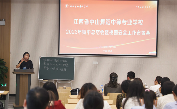 跃马扬鞭提质量,驰而不息再出发。为总结2023年上半学期工作,明确下一步工作重点及部署下一阶段任务,5月15日上午,我校在一楼阶梯教室举行2023年期中总结会暨校园安全工作布置会。出席本次会议的学校领导有理事长胡恩雪、校长潘玲春、党支部书记梁姗姗、常务副校长刘燕、副校长陈文艳、副校长王辉以及各职能处室负责同志、全体教职工参会。本次大会由常务副校长刘燕主持。