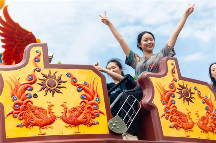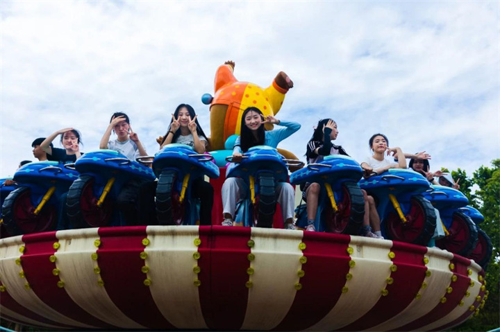 走进方特,快乐加倍。研学实践现场,在老师的分批带领下,同学们穿梭于各个主题园区,在不同的区域里体验着不同的快乐。