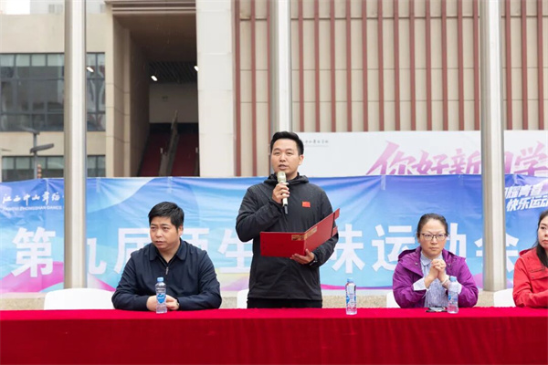 校长为开幕式致辞,鼓励所有运动员发扬奥运精神,赛出风格、赛出水平,在比赛中收获友谊,在挑战中实现成长,在追求更快、更高、更强的体育道路上昂扬奋进。